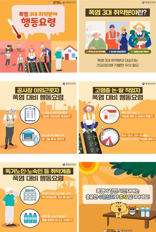 서울시는 폭염으로 인한 인명피해가 없도록 돌봄이 필요한 취약어르신에게 격일로 전화와 미수신시 방문을 통해 안전을 확인하고, 거리노숙인 상담과 거리노숙인 밀집지역에 인력을 확대하고 순찰을 강화할 계획이다. 건설노동자 보호를 위해 충분한 휴식시간 보장, 휴게공간 마련, 폭염 저감을 위한 공사장 살수량 증대 등을 권고하고 이행 여부를 점검할 예정이다.