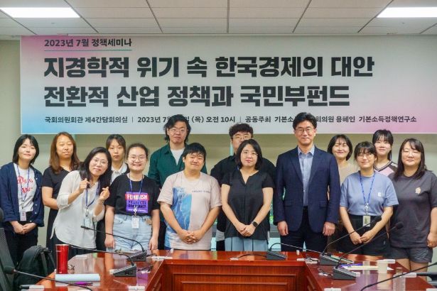 [제주교통복지신문 김강석 기자] 7월 20일 10시, 국회의원회관 제4간담회의실에서 국회의원 용혜인 의원실과 기본소득정책연구소가 공동주최한 '지경학적 위기 속 한국경제의 대안, 전환적 산업 정책과 국민부펀드' 정책 세미나가 열렸다.