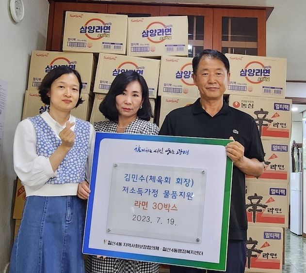 [제주교통복지신문 김강석 기자] 광명시 철산4동 김민수 체육회 회장은 지난 19일 생활이 어려운 가구에 전달해 달라며 라면 30박스를 동 행정복지센터에 기부했다.