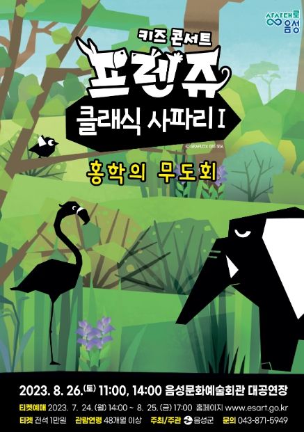 [제주교통복지신문 김강석 기자] 음성군은 오는 8월 26일 토요일 오전 11시, 오후 2시 음성문화예술회관 8월 기획공연으로 키즈콘서트 ‘프렌쥬 클래식 사파리Ⅰ’을 진행한다.