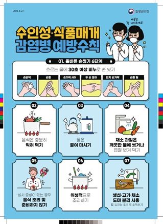 수인성·식품매개 감염병 예방을 위해서는 안전한 조리식품 섭취, 충분한 익혀 먹기, 물 끓여 마시기, 손 씻기 등 위생 수칙 준수가 중요하다.