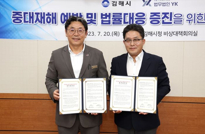 [제주교통복지신문 김강석 기자] 김해시는 지난 20일 시청 비상대책회의실에서 소속 사업장의 중대재해 발생 시 신속 대응이 가능한 법률 체계를 구축하고자 법무법인YK와 업무협약을 체결했다고 21일 밝혔다.