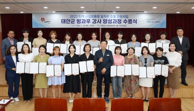 방과 후 강사 양성과정은 태안군이 2년 연속 충청남도 주관 ‘지역산업맞춤형 일자리창출 지원 사업’ 공모에 선정된 데 따른 것으로, 군은 관내 초등학교 등에서 강사 채용 수요가 지속적으로 발생함에 따라 관내 미취업자를 강사로 양성해 지역 일자리 창출에 나서기로 하고 지난 6월부터 교육을 진행했다.