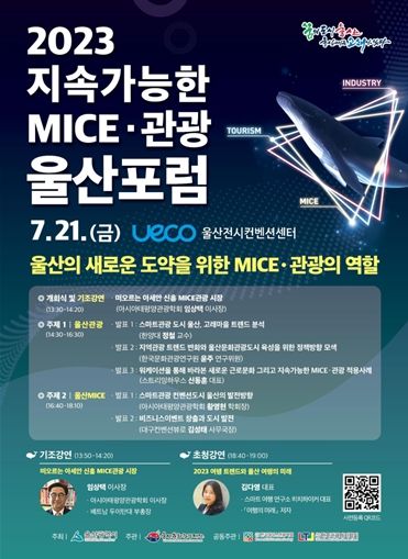 [제주교통복지신문 김강석 기자] 울산시는 7월 21일 오후 1시 30분 울산전시컨벤션센터에서 ‘2023 지속가능한 마이스(MICE)·관광 울산포럼’을 개최한다고 밝혔다.