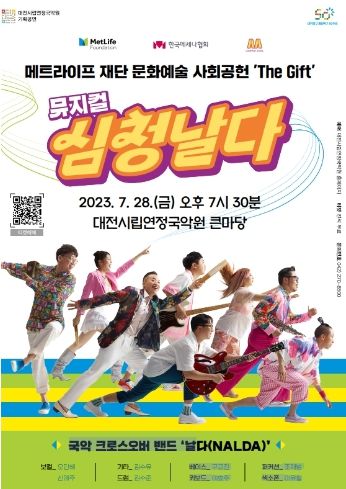 [제주교통복지신문 김강석 기자] 대전시립연정국악원은 한국메세니협회와 메트라이프생명이 문화예술 사회공헌 사업으로 추진하는‘뮤지컬 '심청날다'’를 국악원 초청기획으로 7월 28일 19:30 국악원 큰마당에서 개최한다고 밝혔다.