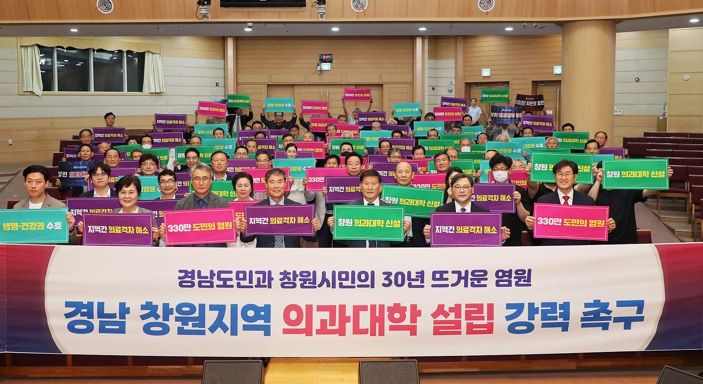 창원시는 경남도와 공동 협력하여 도내 의료인력 부족과 의료서비스 불평등 해소를 위해 창원지역 의대 신설을 촉구하고 있다. 올해 3월 창원 의대 유치 범시민추진위가 출범했고 100만 시민 100만 서명운동은 목표인 30만명을 넘었다. 의대 신설을 요구하는 지역민들의 염원은 커져가고 있다.