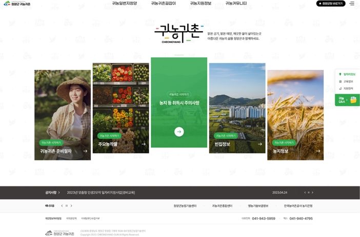 [제주교통복지신문 김강석 기자] 청양군농업기술센터가 이용자 편의성 향상을 위한 검색 기능 강화를 중심으로 귀농 귀촌 통합정보 시스템(홈페이지)을 개편하고 있다.