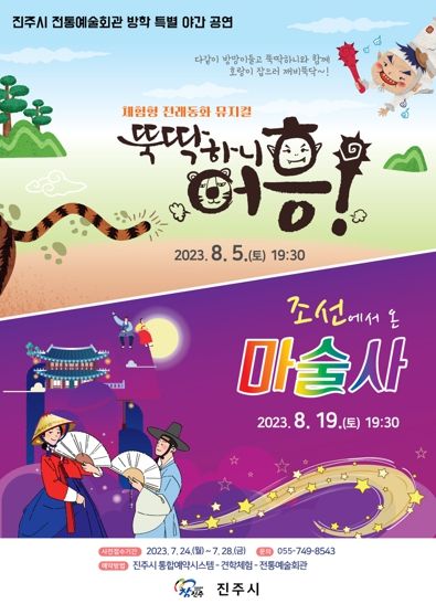 [제주교통복지신문 김강석 기자] 진주시는 오는 8월 5일, 8월 19일 진주시전통예술회관에서 방학특별 야간 기획공연을 2회에 걸쳐 개최한다.