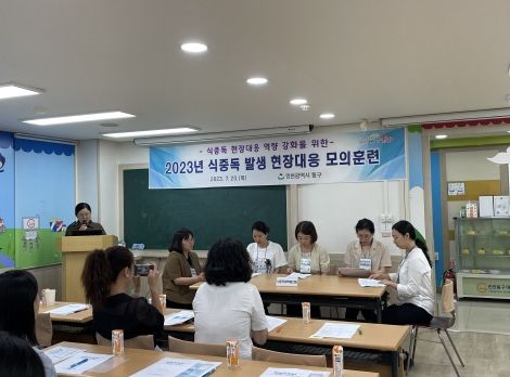 훈련은 매뉴얼에 따라 식중독 의심 환자 발생, 식중독 발생인지·관계기관 전파, 역학조사를 위한 대책협의회 구성, 기관별 역학조사 실시, 발생 장소 소독 및 환자 발생 모니터링 등 사후 조치 순으로 진행됐다.