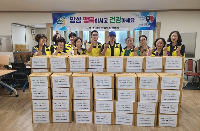 금성면지역사회보장협의체는 위원 13명이 참여한 가운데 폭염여름철 건강꾸러미 식품 나눔에 나섰다.에 취약하고 건강관리 돌봄이 필요한 가정 80곳을 위한