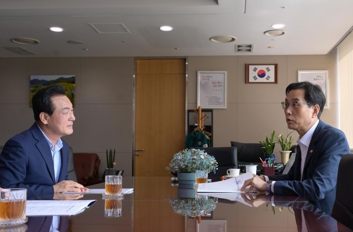 [제주교통복지신문 김강석 기자] 백성현 논산시장이 20일 오전 한 훈 농림축산식품부 차관을 만나 ‘탄소중립형 청정축산단지 조성사업’의 구체적 추진 방향을 설명하며 축산 당국의 적극적 지원을 요청했다.