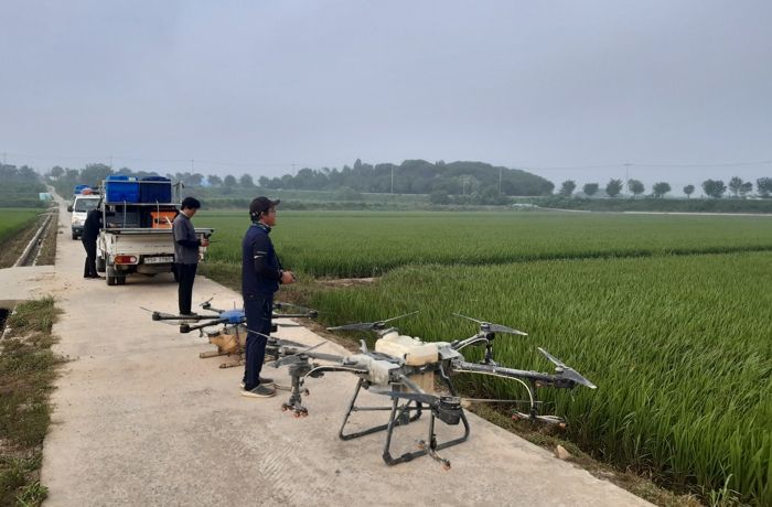 논산시 농업기술센터는 심하게 침수 피해를 입은 광석면 눈다리 인근 신당리, 오강리, 율리 등 약 200ha의 논에 대해 지난 20일 긴급 병해충 방제를 실시했다.