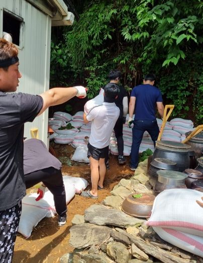 지역주민을 통해 이 소식을 들은 청년정책이장단은 어르신을 돕기 위해 모래주머니를 만들어 산비탈면에 쌓아 올리며 어르신의 안전을 확보했다.
