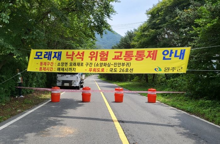 [제주교통복지신문 김강석 기자] 완주군이 낙석이 우려되는 소양면 모래재구간을 신속하게 전면 통제했다.