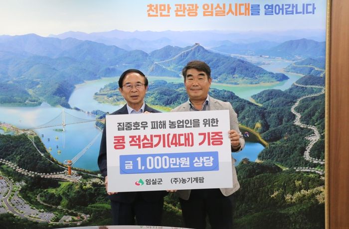 농기계 제조업체인 ㈜농기계팜(대표 조경아)은 21일 심 민 군수실을 찾아 집중호우로 피해를 입은 콩 재배농가들을 위해 임실군에 적심기 4대를(1,000만원 상당) 기증했다.