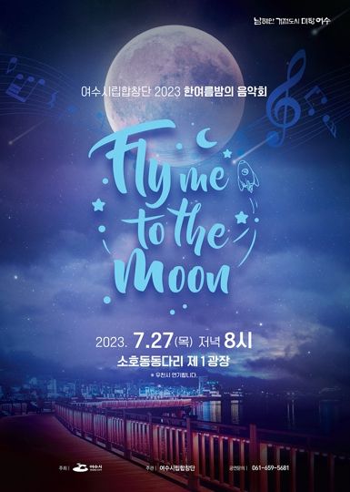 공연은 ‘Fly me to the moon!’이라는 부제로 무료로 진행되며, 여수밤바다를 배경으로 시민과 관광객에 한여름 밤의 낭만과 추억을 선사할 예정이다.