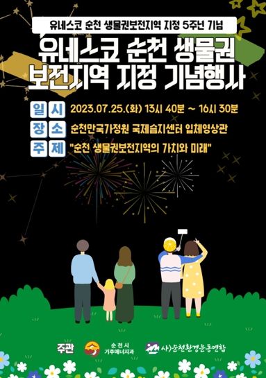 [제주교통복지신문 김강석 기자] 순천시는 유네스코 생물권보전지역 지정 5주년을 맞아 오늘 7월 25일 순천만국가정원 국제습지센터에서 기념행사를 갖는다고 밝혔다.