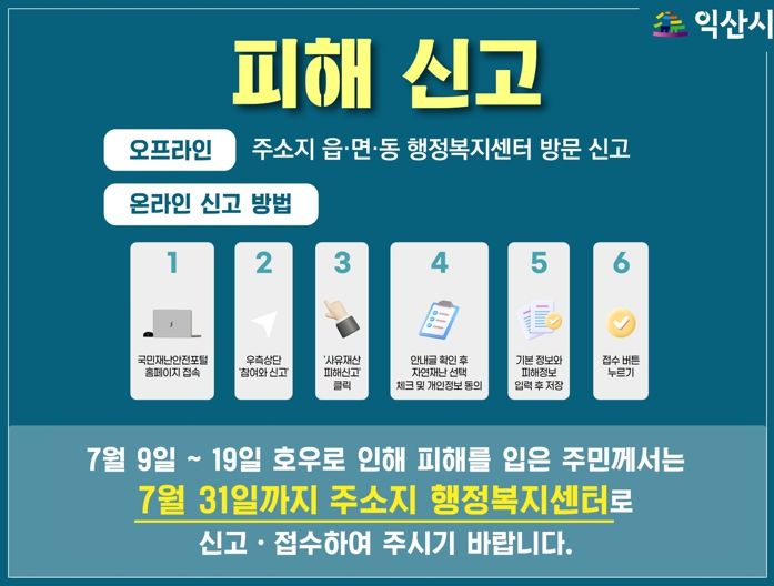 [제주교통복지신문 김강석 기자] 익산시는 특별재난지역 우선 선포에 따라 주민들의 피해 접수에 행정력을 집중하고 있다.