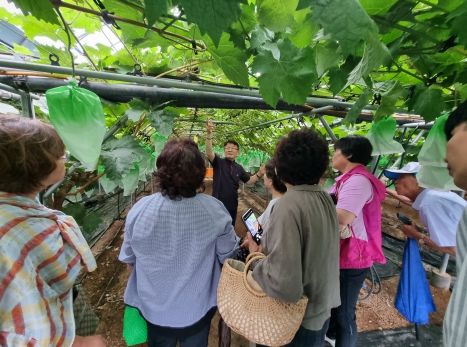 농업기술센터에서 진행 중인 화순군 농업인대학 포도과는 유튜브 ‘최쌤의 농업 톡톡’ 채널로 유명한 구리시농업기술센터 최수정 강사와 농업인대학 포도과 한관만 지도 강사를 필두로 여름철 포도 관리 방법과 병해충 방제를 교육했다.