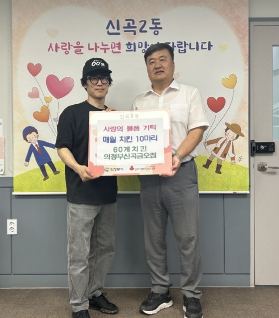 [제주교통복지신문 김강석 기자] 의정부시 신곡2동주민센터는 7월 20일 60계치킨 의정부신곡금오점이 어려운 이웃을 돕기 위해 매월 치킨 10마리를 정기 후원하기로 했다고 밝혔다.