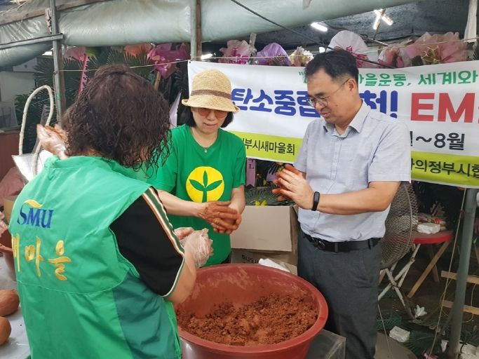 녹양동 새마을지도자협의회와 부녀회는 이날 미생물과 흙을 반죽해 흙공을 만들며 구슬땀을 흘렸다. 만들어진 흙공은 발효 후 환경 정화를 위해 녹양천에 던질 예정이다.