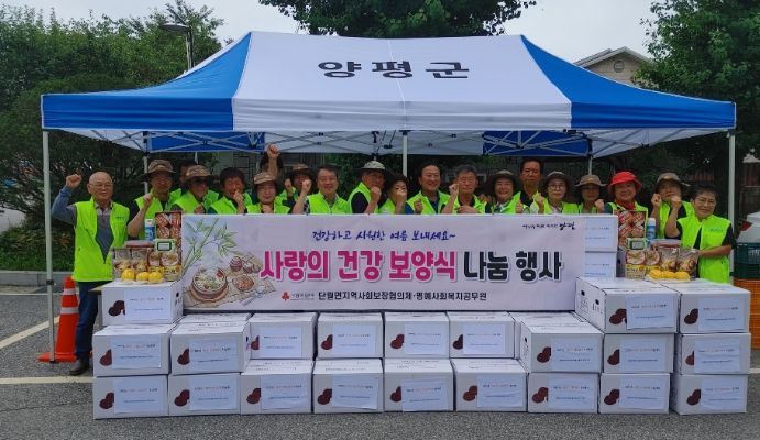 [제주교통복지신문 김강석 기자] 양평군 단월면 지역사회보장협의체와 명예사회복지 공무원은 지난 20일, 하절기 폭염 등으로 힘든 저소득 취약계층 55가구에 보양식(삼계닭, 도가니탕, 깍두기, 참외, 모기약 등)꾸러미 나눔 활동을 펼쳤다.