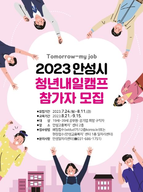 [제주교통복지신문 김강석 기자] 안성시는 2023 안성시 청년내일캠프 참가자를 7월 24일부터 8월 11일까지 모집한다.