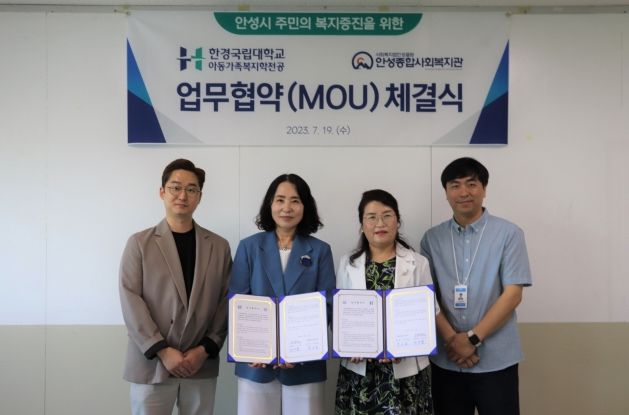 [제주교통복지신문 김강석 기자] 안성종합사회복지관과 한경국립대학교 아동가족복지학전공은 2023년 7월 19일 협력관계를 형성하여 주민의 복지증진을 위한 업무협약을 체결했다.