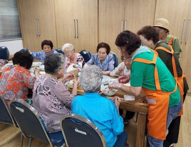 오수옥 권선1동 새마을 부녀회장은 “어르신들이 함께 음식을 드시는 모습을 보니 뿌듯하다. 이런 화기애애한 모습이 계속 이어졌으면 좋겠다.”고 전했다.