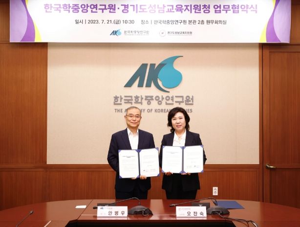 [제주교통복지신문 김강석 기자] 성남교육지원청과 한국학중앙연구원은 7월 21일 한국학중앙연구원에서 성남 관내 학교의 기록문화유산 이해와 인문사회 교육 발전의 협력을 모색하기 위한 MOU를 체결했다.
