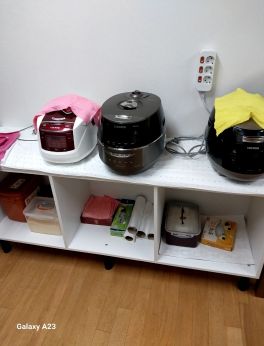 ㈜두원종합주방는 5단 진열장 2개, 2단 진열장 1개, 벽걸이 진열장 1개 등의 수납장과 수저 등 각종 집기를 후원했다.