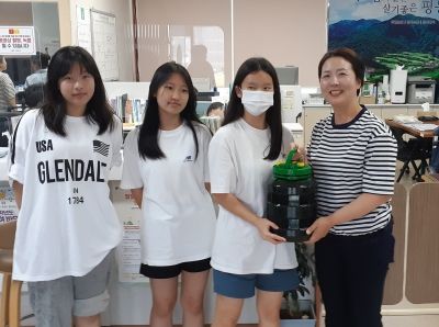 [제주교통복지신문 김강석 기자] 평동중학교 학생회가 최근 잇따른 호우특보 속 시민의 안전을 지키기 위해 애쓴 동 직원들의 노고에 감사하는 마음을 담아 평동에서 자란 매실로 전교생이 직접 담근 매실청 10ℓ를 동 행정복지센터에 전달했다.
