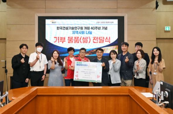 한국건설기술연구원의 개원 40주년 기념으로 진행된 이번 전달식에서 쌀 260kg을 후원하며 송포동 관내의 저소득 가정에 전달하기로 약속했다. 이후 직접 쌀을 전달하면서 취약계층이 건강한 여름나기를 할 수 있도록 도울 예정이다.