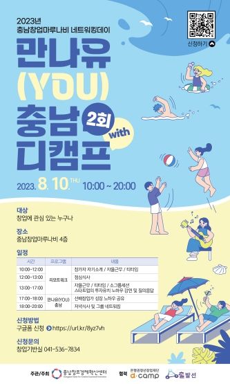 [제주교통복지신문 김강석 기자] 충남창조경제혁신센터는 오는 8월 10일 스타트업 네트워킹 행사 ‘만나유(YOU) 충남 2회’를 개최한다고 밝혔다.