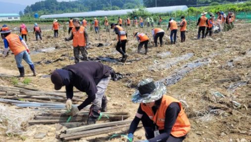 이번에 투입된 자원봉사자들은 많은 비로 인해 유입된 토사 제거 및 도심 주변 부유물 제거, 가재도구 세척과 비닐하우스 정비 등을 전개하고 수해로 삶의 터전을 잃은 이재민들을 위로했다.