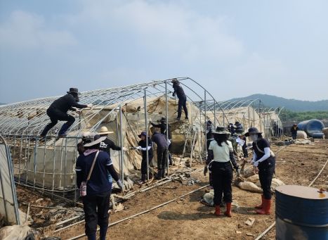 이에 곡성군 공직자들은 피해가 제일 심한 충남 청양군 목면 일대 침수지역을 방문해 수해 복구 봉사활동을 펼쳤다. 공직자들은 비닐하우스에 유입된 부유물과 토사를 제거하고 집기와 가재도구를 꺼내 세척하는 등 마을정비 작업에 구슬땀을 흘렸다. 또한 청양군수가 복구 현장을 방문해 곡성군 공직자를 격려하기도 했다.