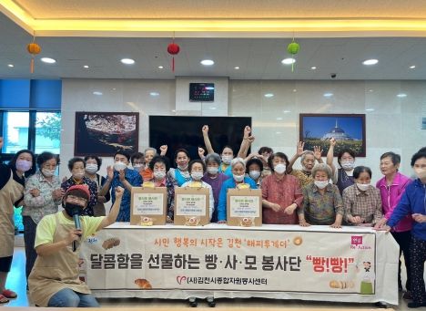 [제주교통복지신문 김강석 기자] 김천시종합자원봉사센터 빵사모봉사단은 지난 17일 폭우가 내리는 가운데 회원 10여명이 자원봉사센터 조리실에 모여 계란 거품내기, 약한 불에 끓이기, 빵틀에 맞추어 오븐에서 굽기 등의 과정으로 이어지는 쌀카스테라 100여개를 포장하여 이쁜 빵 으로 탄생시켰다.