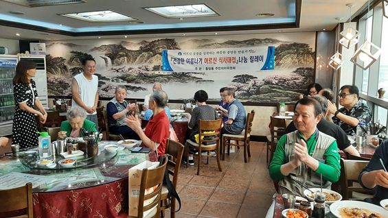 중앙동 주민자치위원회에서 주관하는 이번 행사는 사회 취약계층을 대상으로 건강한 여름을 나실 수 있도록 식사를 대접하는 행사이다. 지난주에 이어 이번주에는 중앙동 소재 동해반점에서 16명의 어르신을 초청하여 식사를 대접했다.