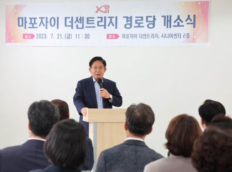 [제주교통복지신문 김강석 기자] 박강수 마포구청장이 21일 오전 염리동에 위치한 마포자이더센트리지 경로당 개소식에 참석했다.