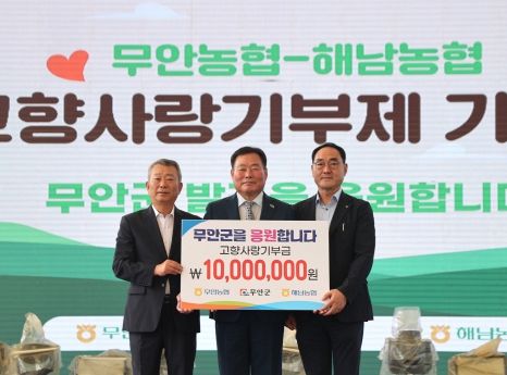 [제주교통복지신문 김강석 기자] 전남 무안군은 해남농협과 무안농협이 고향사랑기부제의 성공적인 정착과 지역 상생발전을 위해 상호 교차 기부에 동참했다고 21일 밝혔다.
