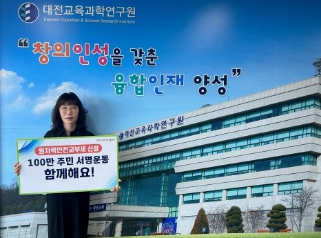 대전교육과학연구원 고덕희 원장은 “대전교육 가족들의 건강과 안전을 보호하기 위한 원자력 안전교부세 신설을 위해 시민 여러분께서 서명운동에 적극 동참해주시기 부탁드린다.”고 말했다.