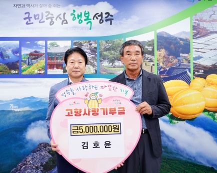 [제주교통복지신문 김강석 기자] 성주군은 지난 18일, ㈜대호종합중기 대표 김호윤씨가 고향사랑기부금 최고 기부액인 500만원을 기부했다.