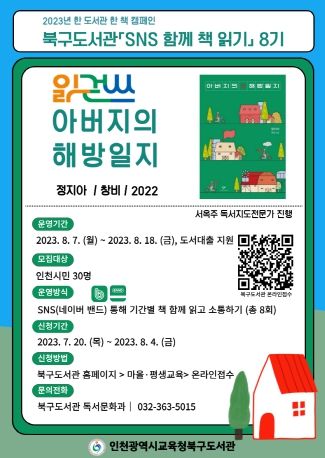 [제주교통복지신문 김강석 기자] 인천광역시교육청북구도서관(관장 임현국)은 ‘한 도서관 한 책 캠페인’ 선정도서인 '아버지의 해방일지'(정지아 저)를 통해 읽고, 쓰고, 작가를 만나는 프로그램을 운영한다고 21일 밝혔다.