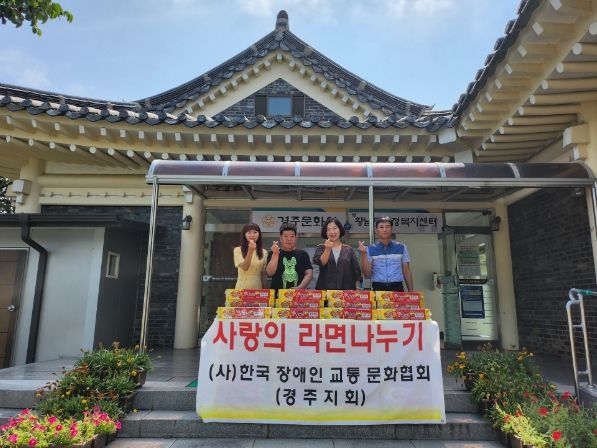 [제주교통복지신문 김강석 기자] 지난 20일 (사)한국장애인교통문화협회 경주지회(총무 김현규)에서 황남동 행정복지센터(동장 서은숙)에 라면 80박스를 기탁했다.
