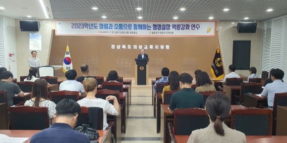 [제주교통복지신문 김강석 기자] 경상북도의성교육지원청은 7월 21일 의성교육지원청 3층 대회의실에서 관내 공․사립 초․중․고등학교 및 소속기관 행정실장을 대상으로 '청렴과 소통으로 함께하는 행정실장 역량강화 연수'를 개최했다.