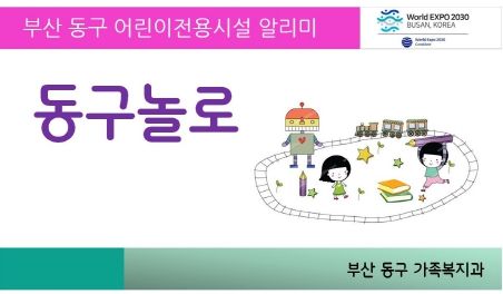 [제주교통복지신문 김강석 기자] 부산 동구청은 꿈과 희망을 만드는 동구로 아이들의 꿈을 키우기 위해 동구 어린이전용시설 알리미 『동구놀로』를 제작했다고 21일 밝혔다.