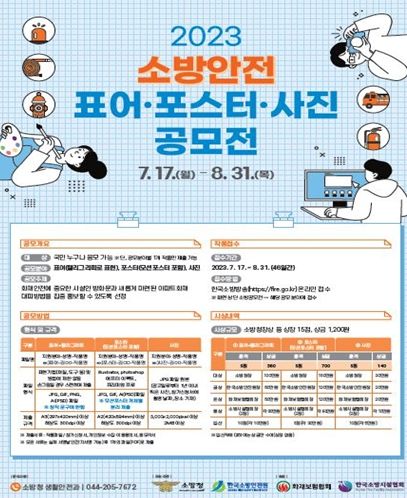 표어·포스터 분야는 올해 공모 주제와 관련해 국민과 공감대를 형성할 수 있는 내용으로 사진 분야는 소방활동 또는 소방안전교육 현장의 재미있고 즐거운 순간을 담으면 된다.