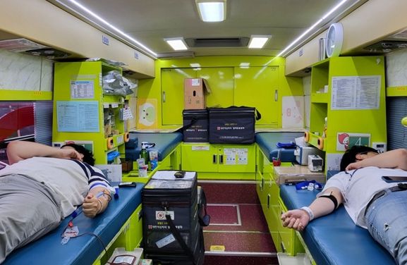 이날 헌혈행사에 참여한 임직원들은 본사 주차장에 마련된 대한적십자사 헌혈버스에 올라 헌혈에 동참했다.