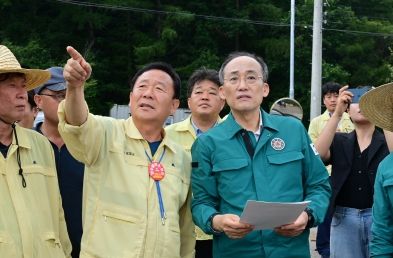 [제주교통복지신문 김강석 기자] 박현국 봉화군수는 지난 21일 봉성면 우곡리 산사태 피해 현장을 찾은 추경호 부총리 겸 기획재정부장관에게 피해 상황을 보고하고 신속한 피해복구 지원과 재해예방 시설 보강을 건의했다.