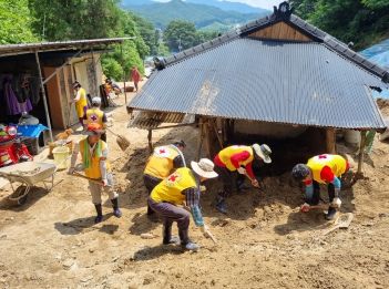 30여 명의 회원은 폭염의 날씨 속에서도 복구에 총력을 기울였다. 토사 유입으로 파손된 가구 및 가전제품 세척·정리, 오염된 커튼 철거 후 새 커튼 교체, 흙탕물로 뒤덮인 실내 대청소, 헛간 토사물 제거 후 유실된 부분 메우기 등 긴급 복구 활동을 전개했다.